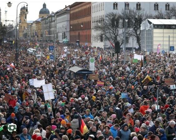 Contro quell’estremismo nazifascista che viene considerato in Germania una minaccia alla democrazia, hanno marciato 360.000 sabato e 550.000 domenica cittadini tedeschi secondo le cifre ufficiali annunciate ieri dal Ministero federale degli Interni. Alcuni giornali  hanno parlato di 1,5 milione di persone molte delle quali non avevano mai manifestato prima o non manifestavano più da anni. Domenica a Monaco gli organizzatori hanno dovuto sospendere la manifestazione perchè ne aspettavano 40 mila e, invece ne  sono arrivati 200 mila. Un record! La polizia ne aveva previsti 25 mila.